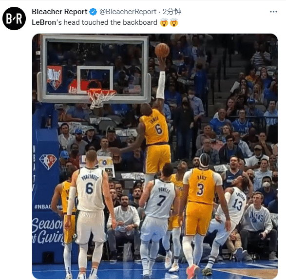 期间,詹姆斯高高跃起封盖对手太疯狂,虽然被吹干扰球,但詹姆斯这一跳犹如梦回巅峰,美媒露天看台转发这一幕,发推写道:詹姆斯的头已经碰到了篮板,脑袋碰到篮板太不可思议,谁敢信他即将37岁,如此一幕引热议,要知道再过两周,老詹就年满37岁了。