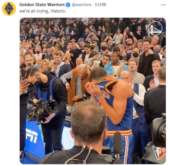 库里破纪录后擦泪喜极而泣!詹姆斯祝贺兄弟,勇士官推:我们都哭了