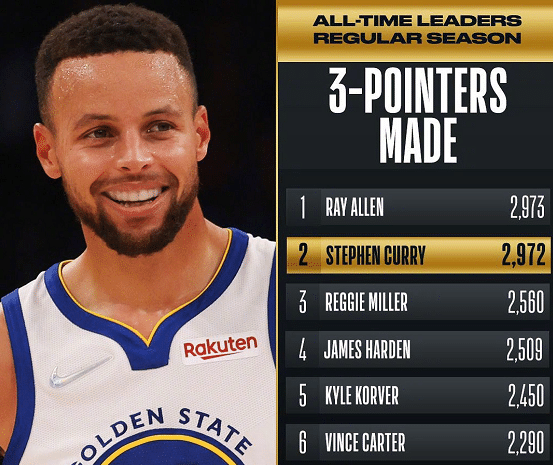 来源:24直播网12-14 15:2524直播网12月14日讯 今天NBA常规赛结束了一场焦点战,勇士后来居上,以102-100击败步行者,拒绝连败。这场比赛除了胜负之外,库里能否打破雷阿伦的常规赛三分王纪录也是最大的看点。全场下来,库里三分球15中5,手感一般,依靠着这5记三分球,库里职业生涯三分球总数来到2972记,距离追平还差1球,距离超越雷阿伦,独享纪录,还差2记三分球,下一场比赛库里将会率领勇士客场挑战尼克斯。