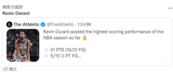 赛后,篮网主帅纳什盛赞杜兰特的表现太不可思议。