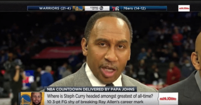 来源:24直播网12-12 16:4224直播网12月12日讯 库里就要成为NBA历史第1射手,并且要把三分球命中数变成NBA最难打破的纪录之一,还处于生涯巅峰的库里即将超越雷阿伦登顶NBA历史三分榜,想想吧,库里这样的射手百年难得一遇,而且还能用三分球改变一个时代的潮流,同时作为当家球星取得巨大成功,这是历史上任何一个射手都做不到的殊荣,而我知道历史有太多伟大的射手,于是我们仍然习惯把库里称为一个射手,把库里放到射手的讨论之中,但NBA名嘴史蒂芬-A-史密斯有话要说,今天勇士客场挑战76人的比赛,A-史密斯就抛出了自己力挺库里比肩乔科詹的言论。