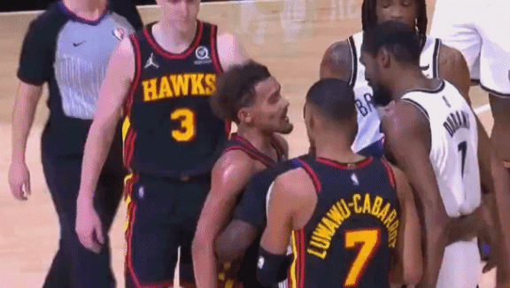 这场比赛中杜兰特和特雷杨还一度发生了冲突,这是比赛进行到还剩下2分02秒的时候,篮网领先老鹰5分,比赛打得很焦灼。杜兰特和特雷杨在一次跑位卡位过程中出现摩擦,两人先是推搡了一下,随后贴面对喷险起冲突。不过马上两人就被队友给拉开了,没有影响到接下来的比赛。之后杜兰特投进关键球,而特雷杨的三分球偏出,最终杜兰特的篮网拿下胜利。