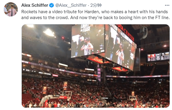 火箭为哈登播放致敬视频!登哥比心回应,观众席稀稀落落令人唏嘘
