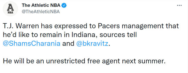 沃伦还需要一个月才能伤愈复出,但这并不影响交易,因为霍顿-塔克要到1月15日之后才具备交易资格。沃伦是一个攻防多面手,可以增添三巨头之外的得分选择,霍乐迪过去两年的三分命中率是39.2%。步行者已经决定重建,而霍顿-塔克、纳恩和蒙克的年龄都在26岁以下,他们可能会被这组报价吸引。