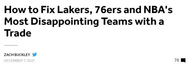 来源:24直播网12-08 11:1524直播网12月08日讯 ,知名美媒Bleacher Report(B/R)提到了四支开局令人失望的球队,包括湖人、开拓者、步行者和76人。他们为这四支球队分别建议了一笔交易方案,认为这样的交易能够拯救他们,解决球队的问题。关于湖人,他们提出的方案是3换2:用霍顿-塔克、纳恩和蒙克去换步行者的TJ-沃伦和贾斯汀-霍乐迪。