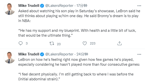 詹姆斯再次强调,他想要在未来的某一天和布朗尼一起打NBA,打NBA也是布朗尼的梦想:他(布朗尼)有我的支持,健康加上一点点运气,最终那(詹皇父子同场竞技)将会实现。