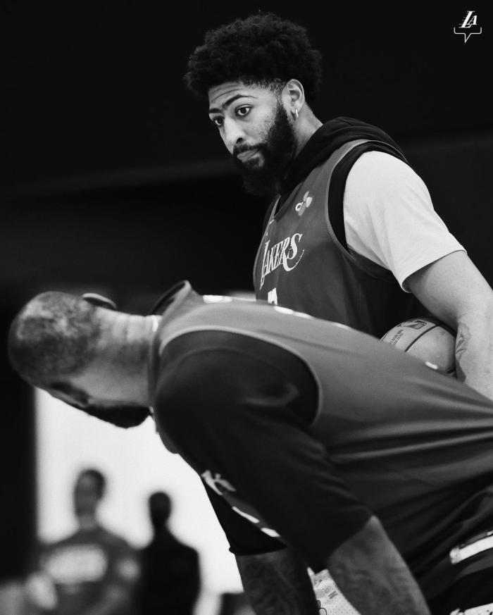 35岁朗多站着讲话,阿里扎、贝兹莫尔、艾灵顿等人认真听讲,此时浓眉也站在附近;自从受伤以来,阿里扎首次参加全队实战,不过纳恩距离复出还需要很长一段时间,2021年不太可能复出。