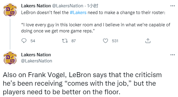 训练之后,詹姆斯重申他想和布朗尼一起打NBA,打NBA也是布朗尼的梦想,并且相信最终这会实现的;詹姆斯还表示:我不觉得湖人需要对目前阵容做出改变,我爱这个更衣室里的每一个人,我相信我们有能力赢下更多的比赛。