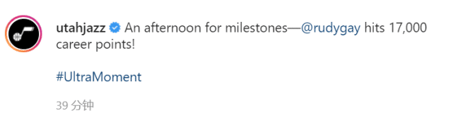 在这场比赛前,盖伊的生涯总得分是16985分,距离17000分里程碑还差15分,而本场比赛,盖伊不多不少正好拿到15分。第三节还剩47.3秒时,盖伊三分命中,正式解锁里程碑。爵士官方也第一时间晒图祝贺盖伊,并配文写道:“一个里程碑的下午——盖伊拿下生涯第17000分!”