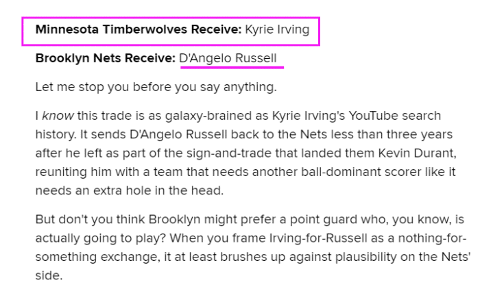 美媒列欧文交易方案:篮网森林狼1换1,拉塞尔可助KD哈登冲冠!