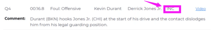 末节还剩16.8秒,篮网105-110落后5分,杜兰特杀到禁区暴扣得分,追到落后3分;裁判报告指出,杜兰特进攻之前有一个搂腰的动作,搂倒小琼斯,这应该吹罚杜兰特进攻犯规,扣篮无效;当时小琼斯向裁判抱怨却没用,若当时裁判吹罚杜兰特犯规,这比赛也就彻底失去悬念了。