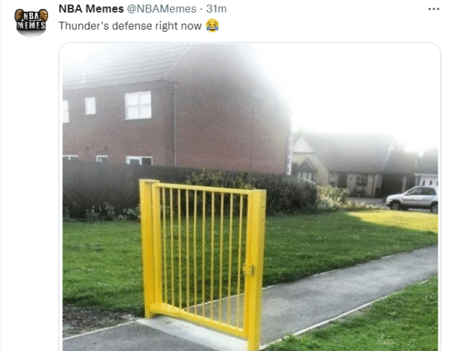雷霆的防守确实太差了,灰熊投篮命中率62.5%,三分命中率52.9%,都远超赛季平均水准。美媒NBA Meme晒出神图调侃雷霆的防守,那扇铁栅栏如同一个形同虚设的防守,让灰熊打爆了!