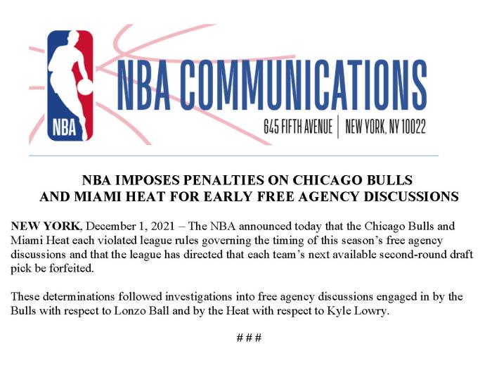 由于在自由球员交易开启后,这两笔交易很快就达成,因此联盟介入调查这两笔先签后换的交易,经过长达三个多月的调查和取证,最终联盟宣布他们存在违规交易的行为,公牛和热火都被没收一个选秀权。