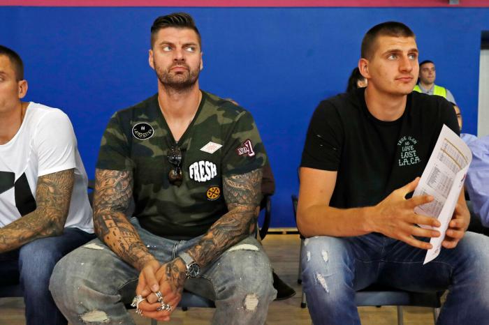 约基奇遭狂嘘!冲突后首次现身热火主场,两位哥哥坐在掘金替补席后面