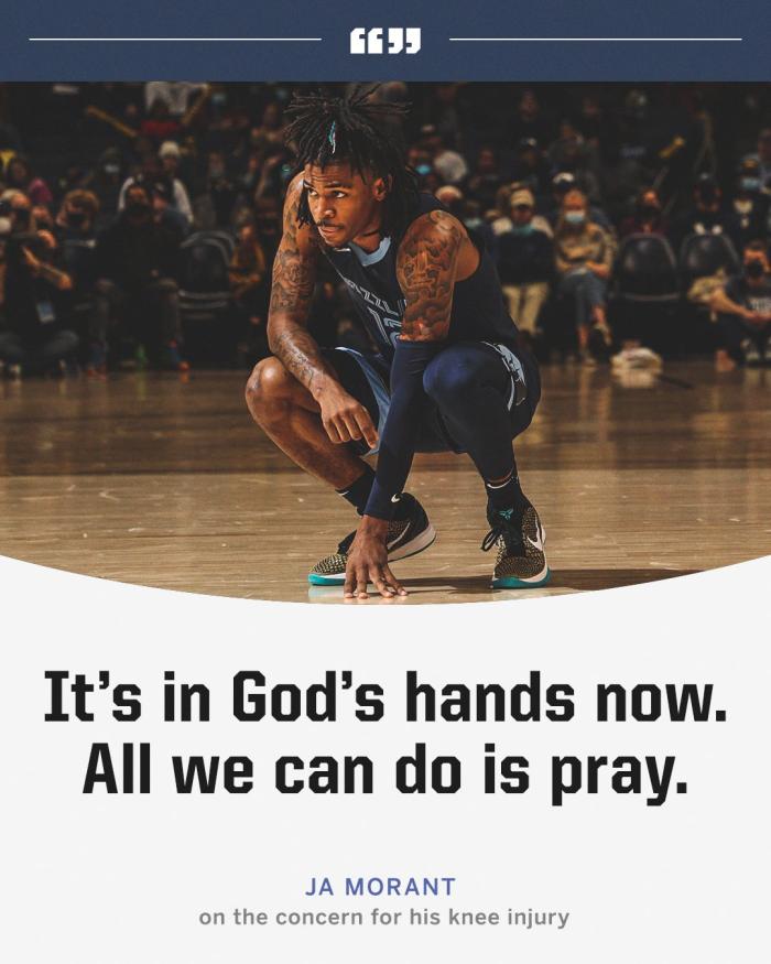 莫兰特受伤之后,特雷-杨等多名球员发推为其祈祷,小贾伦-杰克逊表示看到兄弟受伤倒下,这很艰难;莫兰特本人也发文写道:现在一切由上帝决定,我们能做的就是祈祷。