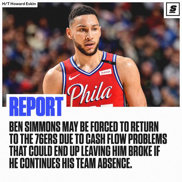 自从西蒙斯和76人闹翻之后,他多次表态再也不会为76人出战,而且拒绝归队;可主动权并不在西蒙斯手里,在各种压力之下,他只能选择归队参加训练,不过赛季至今,西蒙斯以心理问题为由还没有为76人打比赛,在这个问题,双方依旧存在分歧,因此76人继续对他罚款。