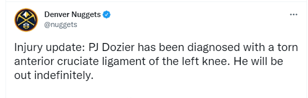 掘金官宣多齐尔左膝十字韧带撕裂,合同年遭大伤太不幸 赛季报销!