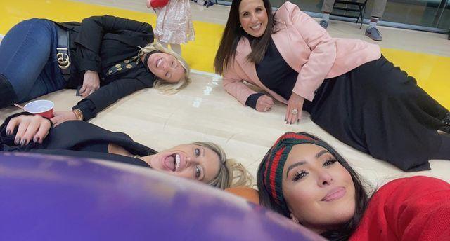 瓦妮莎还和珍妮-巴斯、兰比斯、大加索尔的妻子凯特一起合影,享受闺蜜时刻。她们躺在湖人训练馆的地板上自拍,瓦妮莎配上了紫金的心形图案。瓦妮莎还和凯特、伊莉莎白合影,她是伊莉莎白的教母。