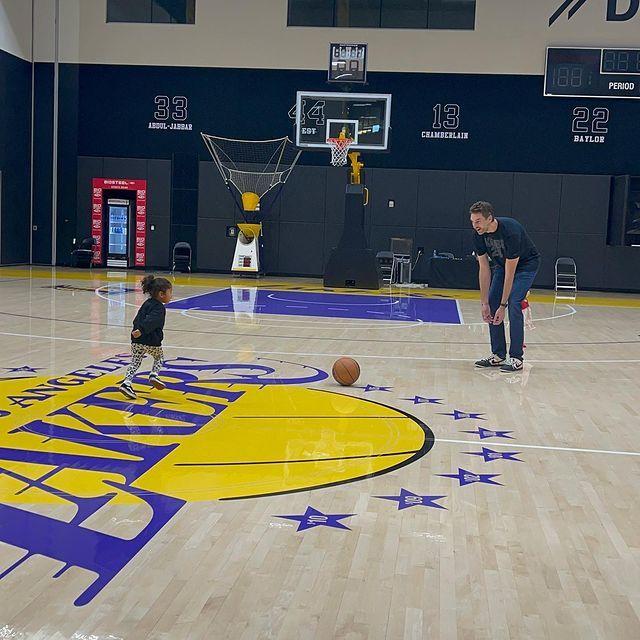 科比的三女儿比安卡和小女儿卡普里,在湖人训练馆里开心地奔跑,他们的身边还有大加索尔的女儿伊莉莎白-吉安娜-加索尔。大加索尔和她们一起打球,场面非常温馨,大加索尔还抱起她们尝试扣篮,但显然孩子们还是矮了一些。瓦妮莎配文写道:“加索尔叔叔和佩林卡叔叔,科比的小公主们。”