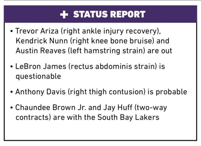 詹姆斯在上一场比赛中迎来复出,打了32分钟,16中10,三分7中3,得到23分6篮板2助攻2抢断。湖人再次输球,战绩变成8胜9负,赛后,詹姆斯表示这是自己两周半来的第一场比赛,感觉自己又变成一个新秀,他们还在试着弄清楚如何轮换。球队连续遭遇伤病,让沃格尔不得不一直调整首发和轮换,打了17场比赛的湖人,已经使用过7套首发阵容。