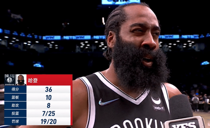 哈登单场罚球出手数20次,创个人篮网生涯新高;