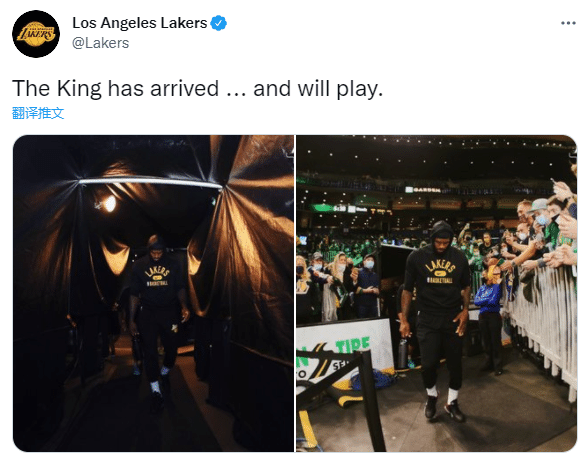 来源:24直播网11-20 10:1424直播网11月20日讯 ,洛杉矶湖人官方正式宣布詹姆斯复出,湖人官推晒出詹姆斯入场照,并且写道:国王已经抵达,并且会出战。