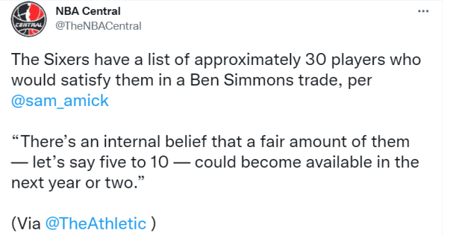 西蒙斯再次申请交易!曝费城交易目标名单高达30人