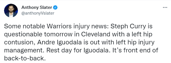勇士官宣:库里臀部挫伤,下一场出战成疑
