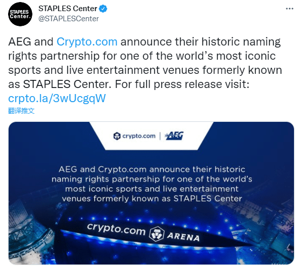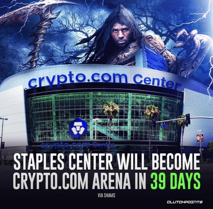 斯台普斯球馆的新名称是Crypto.com,这家虚拟货币交易公司总共花费超过7亿美元获得了湖人和快船主场斯台普斯中心的冠名权,这是美国史上最大的一笔球馆冠名权交易。