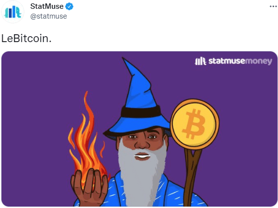 斯台普斯球馆更名引热议,詹姆斯“新绰号”也冲上热搜,美媒Statmuse晒出了一张詹姆斯的卡通P图,配文写道:LeBitcoin(勒-比特币)。