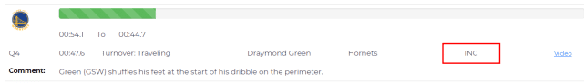 最后两分钟唯一一次漏判,出现在距离比赛结束还有47.6秒。当时,追梦接库里传球,突然启动冲向篮下,扣篮得分。这个进球,帮助勇士将比分扳成102平,算是一个非常关键的进球。不过裁判报告显示,追梦在启动时走步了,因此这球应该吹走步违例,进球本该无效。裁判漏判了走步,让勇士获利了。