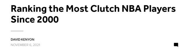来源:24直播网11-07 16:0924直播网11月07日讯 谁是关键时刻的最佳球员?北京时间11月7日,知名美媒Bleacher Report(B/R)通过数据评出了21世纪的前8名。他们重点考察的数据是自2000年以来的常规赛和季后赛最后两分钟的投篮数据(分差在一个回合内),而入榜的最低要求是在这个时间段和标准下,常规赛至少出手100次,季后赛至少出手20次。让我们来看看最终排名——