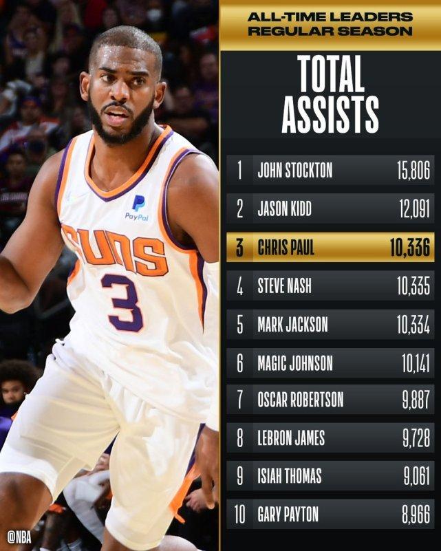 10336次助攻独占第三!保罗连超两大名宿 史上仅次于斯托克顿基德