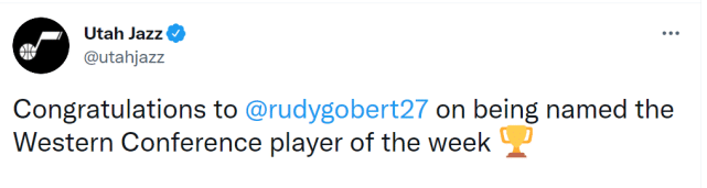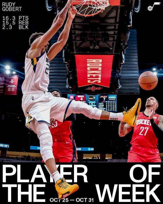 新赛季前6场比赛,戈贝尔一共得到98分103篮板10盖帽,这是自2001-02赛季以来,第3次有球员能够在开季前6场比赛得到至少90分100篮板10盖帽的数据。庄神曾在2015-16赛季和2019-20赛季做到过。新赛季至今,戈贝尔场均16.3分17.2篮板1.7盖帽。