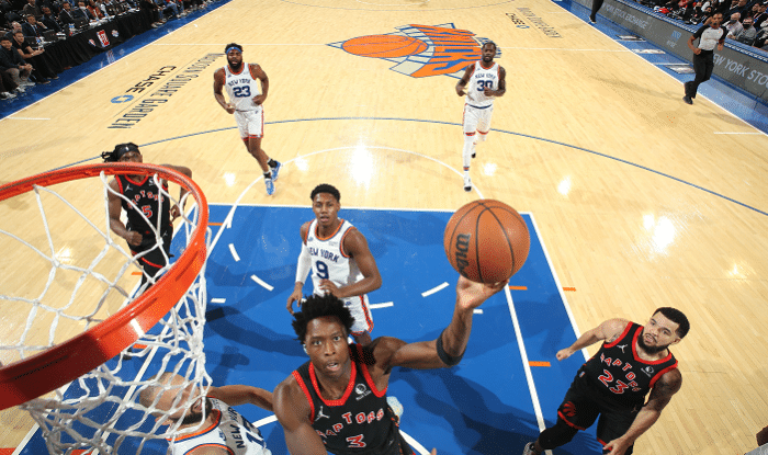 来源:24直播网11-02 15:5024直播网11月02日讯 今天NBA常规赛结束了一场焦点大战,猛龙在客场以113-104击败纽约尼克斯,迎来4连胜。这场比赛猛龙一度在首节落后对手8分,不过他们依靠着次节的缩小分差和下半场的爆发,强势逆转取得胜利。猛龙悍将阿奴诺比打出了代表作,他全场轰下了个人职业生涯最高的36分,还有6篮板2助攻入账,表现非常出色。特伦特26分、范弗里特17分9篮板7助攻,也都是球队逆转的功臣。
