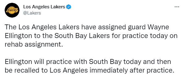 湖人新援艾灵顿(腿筋拉伤)已经接近复出,将和南湾湖人一起进行训练,将在训练之后被召回到洛杉矶。