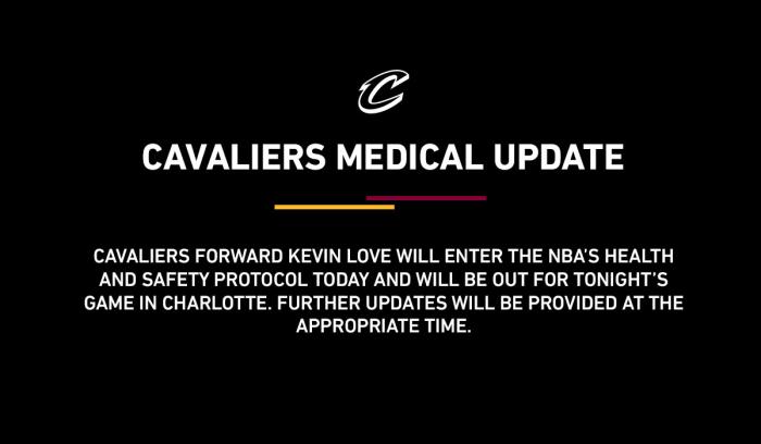 来源:24直播网11-02 15:4324直播网11月02日讯 ,克里夫兰骑士队正式官宣,官方声明:凯文-乐福因触发健康与安全协议而缺席今天与黄蜂的比赛,将在未来进一步更新他的情况;乐福被隔离,名记shams表示乐福将缺席几场比赛。