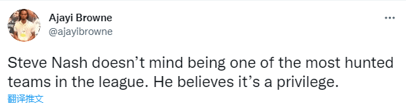 谈到球队的情况,纳什还表示从未考虑把格里芬移出首发,盛赞乔-哈里斯是一名愿意防守的好射手;纳什还表示不介意篮网成为联盟众矢之的,直言这是一种荣幸。
