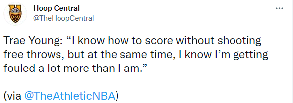 特雷-杨还表示:我知道如何在不罚球的情况下得分,但与此同时,我知道我被犯规的次数要多得多。