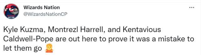 奇才球迷媒体Wizards Nation写道:“库兹马、哈雷尔和波普证明了让他们离开是一个错误。”你们觉得佩林卡错了吗?欢迎留言发表见解。
