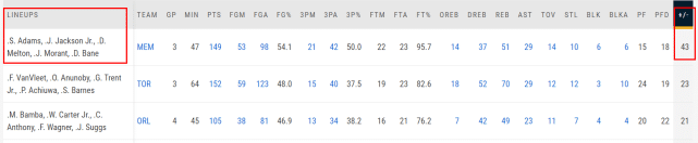 不只是他,灰熊的首发五人组同场时也有极大的优势。3场比赛,莫兰特+贝恩+梅尔顿+小杰克逊+亚当斯的组合同场47分钟,赢了对手43分。这一赢分,高居联盟所有五人组合之首。排名第二的是猛龙的首发五人组,但他们打了64分钟只赢了23分。