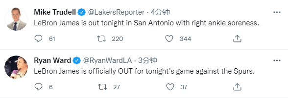另外要说的是,湖人官方已经确认,詹姆斯因右脚踝酸痛而缺战马刺,本赛季首次因伤休战,蒙克顶替詹姆斯首发出战,湖人新首发五虎是浓眉、威少、蒙克、贝兹莫尔和小乔丹,预计老詹将在下一场复出对阵雷霆。