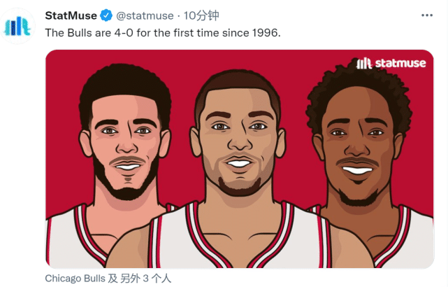 值得一提的是,据美媒statmuse统计,这是公牛自1996-97赛季以来首次在赛季初拿到4胜0负。众所周知,96-97赛季,篮球之神乔丹率领公牛拿到了队史第5座总冠军,但自那以后,公牛已经有25年没有在开季拿到四连胜,直到本赛季!