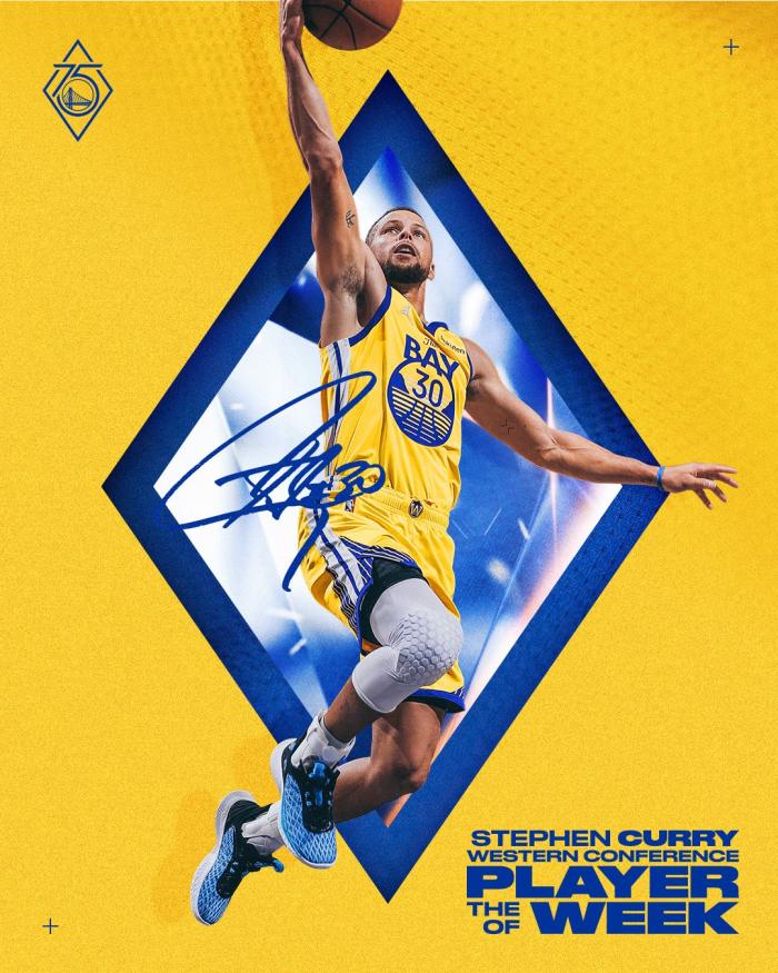 勇士官方第一时间恭喜库里,晒照并且发推写道:现在这就是你开始一个赛季的方式恭喜库里成为西部周最佳球员!