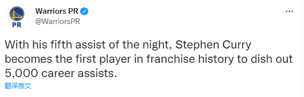 随着本场拿到7次助攻,库里职业生涯总助攻数正式达到5002次,成为勇士队史第一位达成此里程碑的球员,创纪录成为队史第一人。