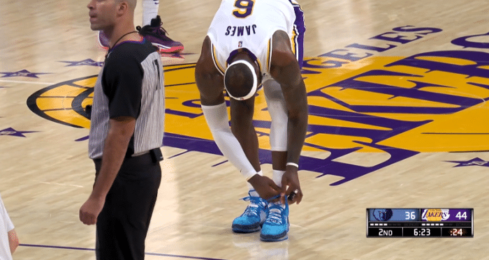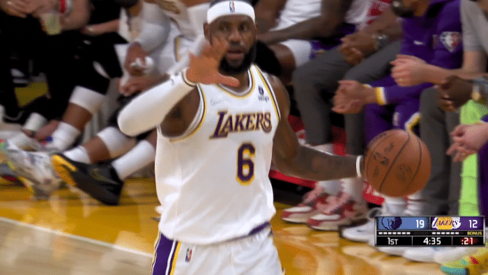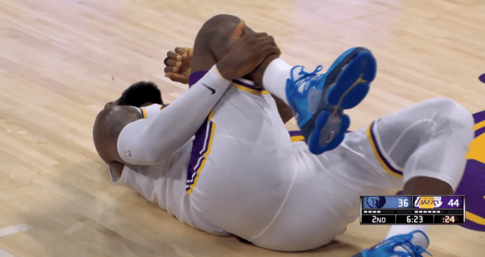 詹姆斯第一节进攻状态不佳,第二节终于命中三分球,不过第二节6分23秒,詹姆斯痛苦倒地,捂着小腿令人担忧,被倒地的灰熊球员压到小腿,湖人众将赶紧围过来,詹姆斯躺在地板上缓了一会。