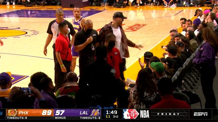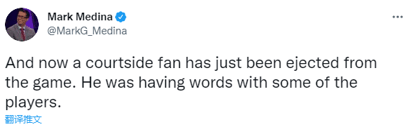 据记者Mark Medina报道称,该球迷在本场比赛里与一些球员频繁争吵。