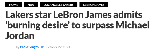 还差两个冠军!詹姆斯承认强烈渴望超越乔丹 名记:他每天的动力