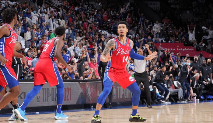 篮网可以逆转,和丹尼格林也有很大的关系,这位费城首发悍将本场比赛表现不佳,尤其是当球队领先10分,篮网逐渐起势的情况下,他投丢了2记三分球,而且都是三不沾的状态,也给了篮网更多的进攻机会。同时这样的投篮打压了本队的气势,确实很尴尬。当然还有在还剩下14秒的时候塞布尔传球,直接给到哈登,这个失误和后续恩比德的三分球不中,也直接宣告了费城主场失守。