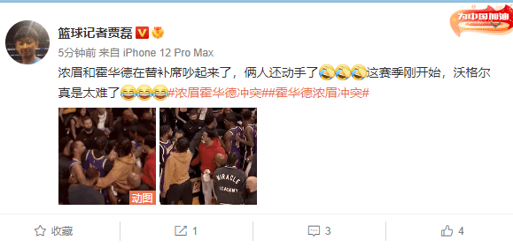 知名篮球记者贾磊表示;浓眉和霍华德在替补席吵起来了,俩人还动手了,这赛季刚开始,沃格尔真是太难了.